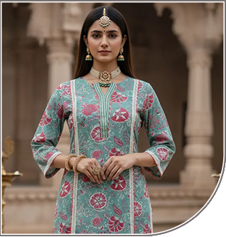 Chic Printed Cotton Kurta Pant Set for Women – Indo-Western Style