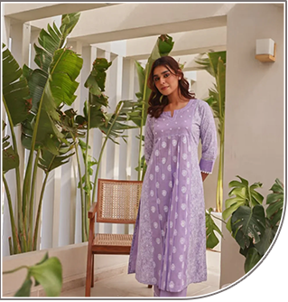Purple Hues – Handblock Printed Cotton Dupatta Suit Set