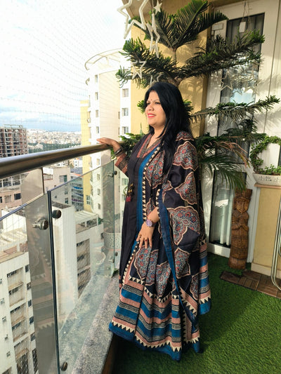 Rust & Ivory Handblock Anarkali Set