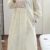The kurta features delicate pastel thread work, hand-embroidered florals, and a lightly gathered flare that enhances its feminine appeal. The matching dupatta comes with scalloped edges and dainty embroidered motifs, adding a refined finishing touch. Paired with coordinating bottoms, this ensemble delivers a sophisticated, soothing ethnic look in a serene off-white/cream tone.